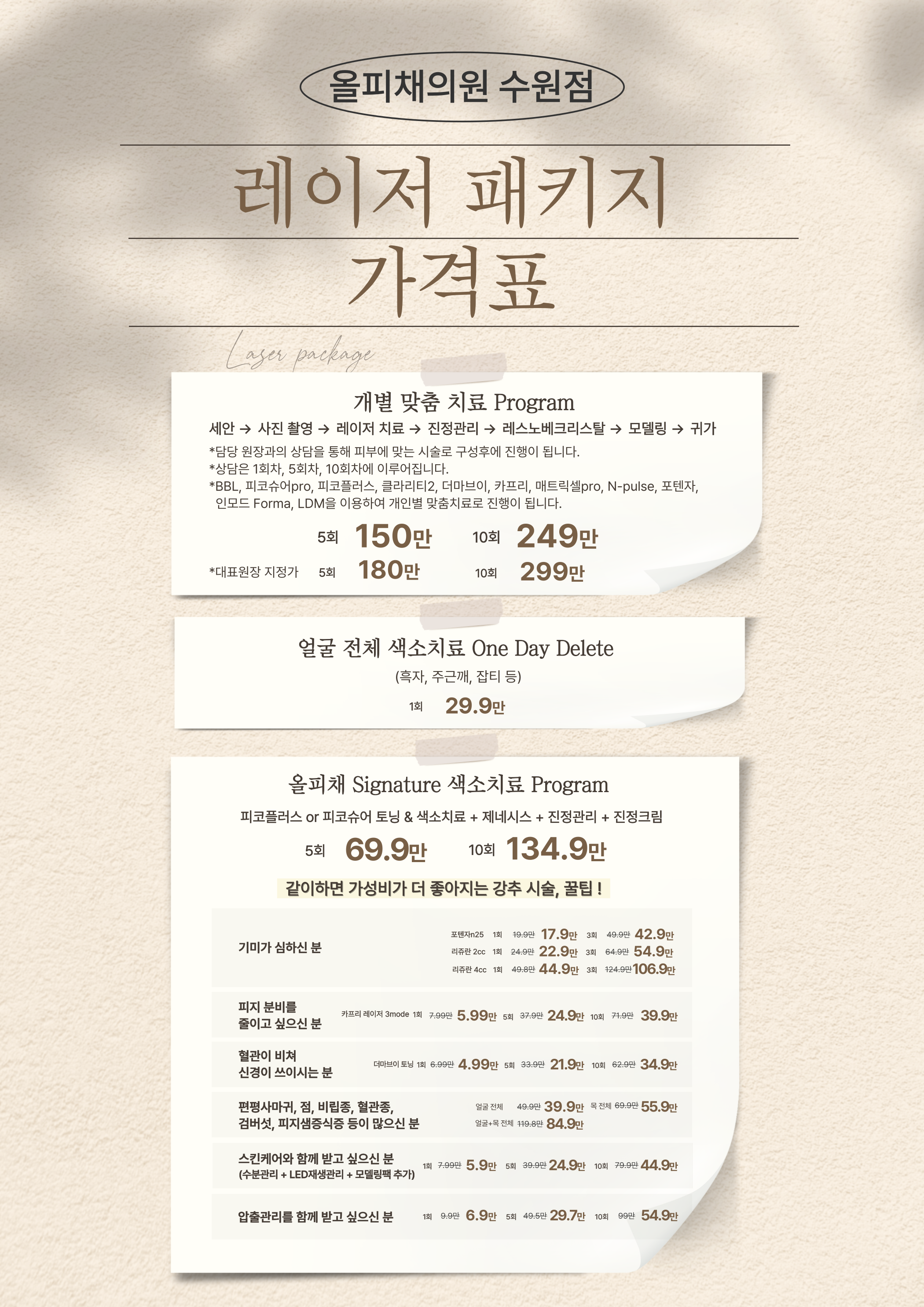 [일반]*[10회]* **올피채 Signature 색소치료 Program >> 피코플러스 or 피코슈어 토닝 & 색소치료 + 제네시스 + 진정관리 + 진정크림